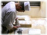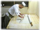 均一の薄さに延して行きます。 |