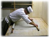 均等の厚さに延ばして行きます。 |