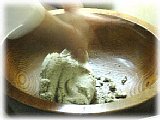 うす青緑色で香りが非常に強く栄養価が非常に強いという良さの反面、食感にボソボソ感を感じます。
