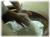 余分な粉をふり落とします。 |